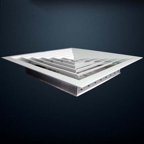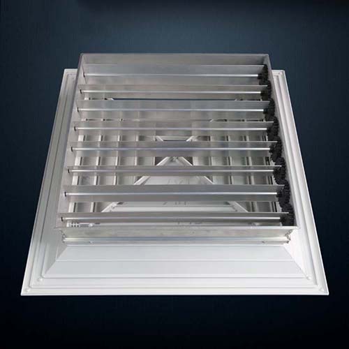 1.該風(fēng)口葉片角度為固定式,不能調(diào)節(jié),一般安裝在天花板或吊頂上,氣流屬貼附(平送)型。
